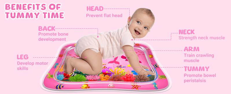 Baby Tummy Time Water Mat - Inflatable Sensory Playmat for Newborns and Infants (3-12 Months) - Ideal Gift for Boys and Girls (Pink)